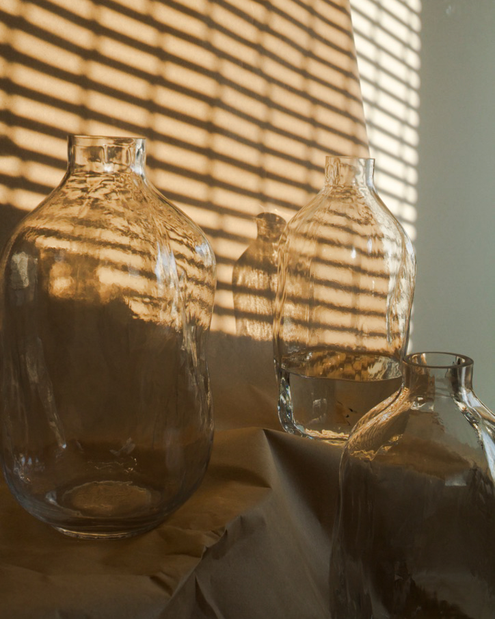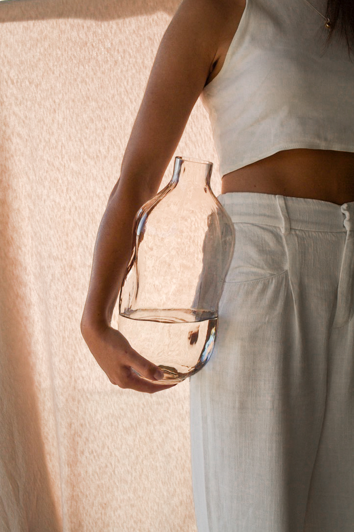 Γυάλινο βάζο σε δύο διαστάσεις: 15 x 32 εκ., 15 x 28 εκ. διάμετρος ανοίγματος 5 εκ. Το ιδιαίτερο ακανόνιστο σχήμα του συνδιάζει μοντέρνες και κλασσικές γραμμές καθιστόντας το ιδανικό για τούς μοντέρνους με minimal τάσεις χώρους αλλά και για χώρους με περισσότερο ζεστά και κλασικά χαρακτηριστικά.