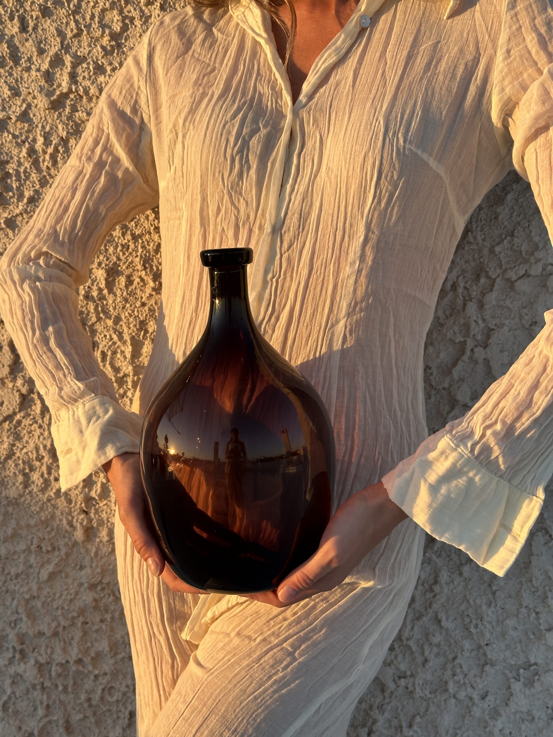 Γυάλινο Βάζο σε καφέ χρώμα με διαστάσεις: 16.5 x 28.3 εκ., διάμετρος ανοίγματος 4.5 εκ. Το σχέδιο και το χρώμα του το καθιστούν στα βασικά βάζα που ταιριάζουν σε κάθε αισθητική και χώρο.